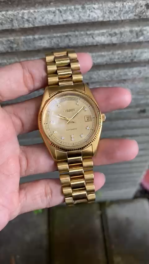 Rare Tissot President Automatic Day Date Linen Dial Diamond Swiss Vintage Watch This Watch is Preowned with Good Condition Brand : Tissot Ref/Model : Tissot President Movement : Automatic Dial : Gold Case Material : Steel Case Size : 38.4mm Include crown Bracelet : Original Accessories : Watch Only Shipping , Returns and Sales Terms,: ------------------------------------------- We ship worldwide via Fedex or DHL Express We not accept Return We do combine shipping we not responsibility for Import duties, taxes, and charges , so please check in your country's customs office to determine what these additional costs will be prior to bidding or buying. Please check the item condition and photos carefully before buy or make your bid and Please don't buy/bid if you don't have any intention to buy. Once you make your buy/bid, it means that you are willing to buy it and also willing to pay for the final value and shipping cost. Any condition that is not describe on item's description but shown in photos will be considered as described. Sold As Photo, no return accepted. If you bid and win the auction means that you already understand and accept the item condition as describe above. Listing and template services provided by inkFrog