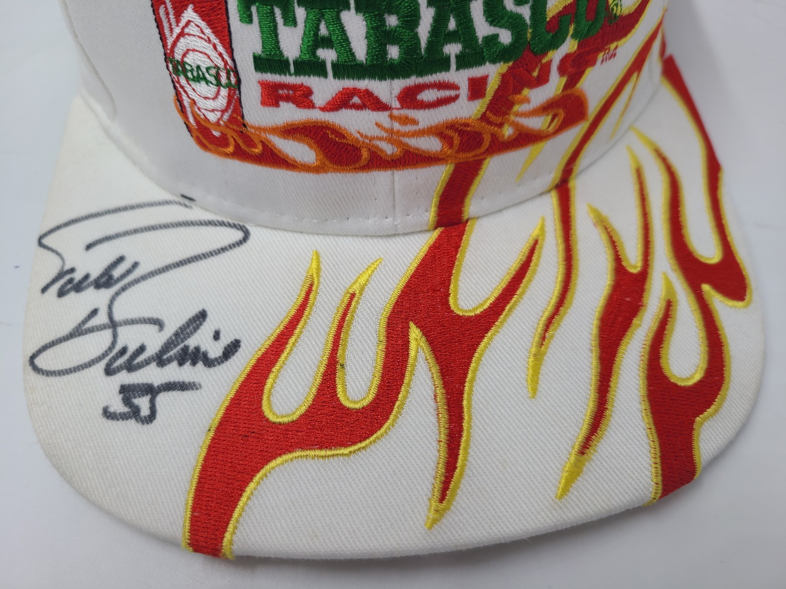 Has some stains/discoloration on the side as seen in photos. Vintage Todd Bodine #35 Signed Autographed Team Tabasco Racing Hat Cap NASCAR. EACH ADDITIONAL HAT PURCHASED IS ONLY $1 ADDED SHIPPING!
