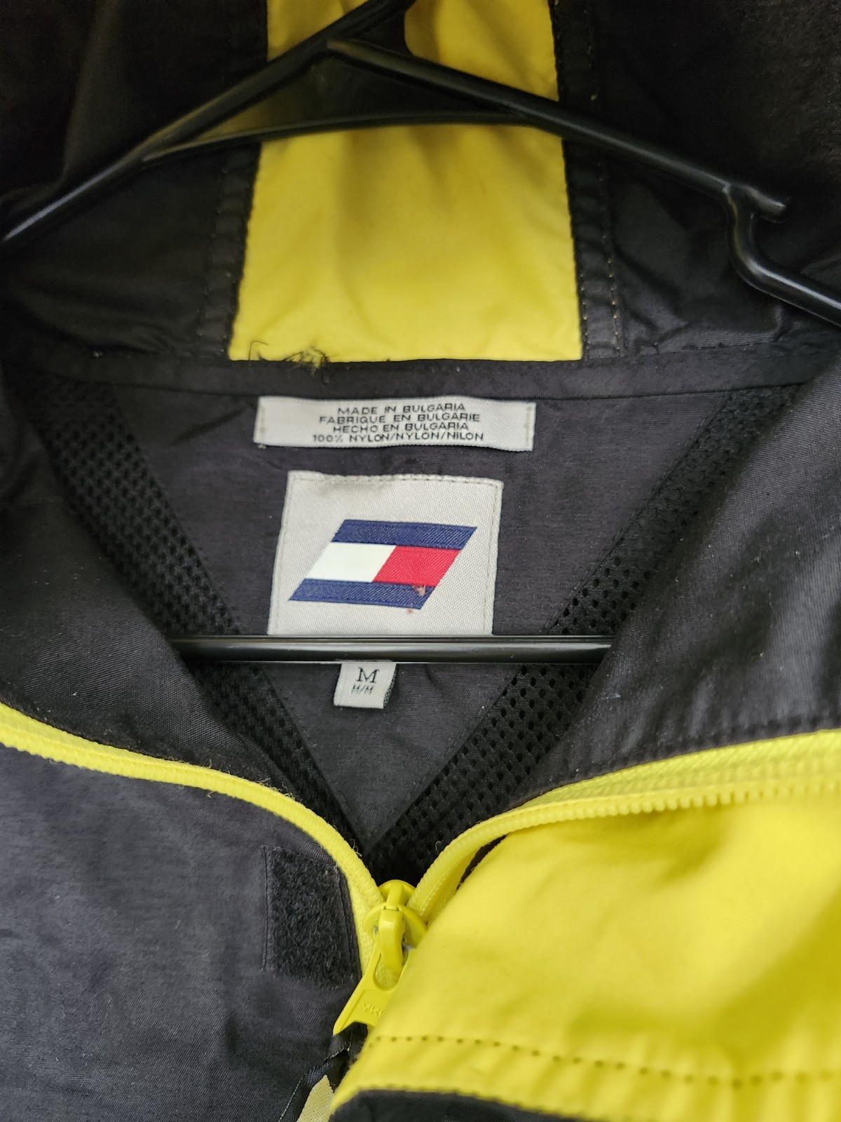 This vintage Tommy Hilfiger windbreaker jacket is a must-have for any fashion-savvy individual. The blue and yellow colors make it a vibrant addition to any wardrobe, while the nylon outer shell material and lining material ensure durability and comfort. The jacket has a solid pattern with embroidered accents and the iconic Tommy Hilfiger logo, adding to its classic and designer appeal. The jacket's features include a hood, windproof and water-resistant capabilities, and various closure options such as zip, button, and snap. It is perfect for any occasion, whether it be travel, casual outings, or formal events. The jacket is also easy to care for as it is machine washable. With its versatility and stylish design, this windbreaker is a great addition to any collection.