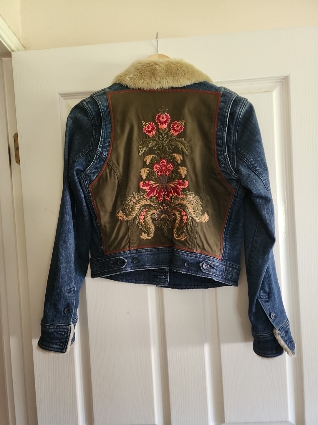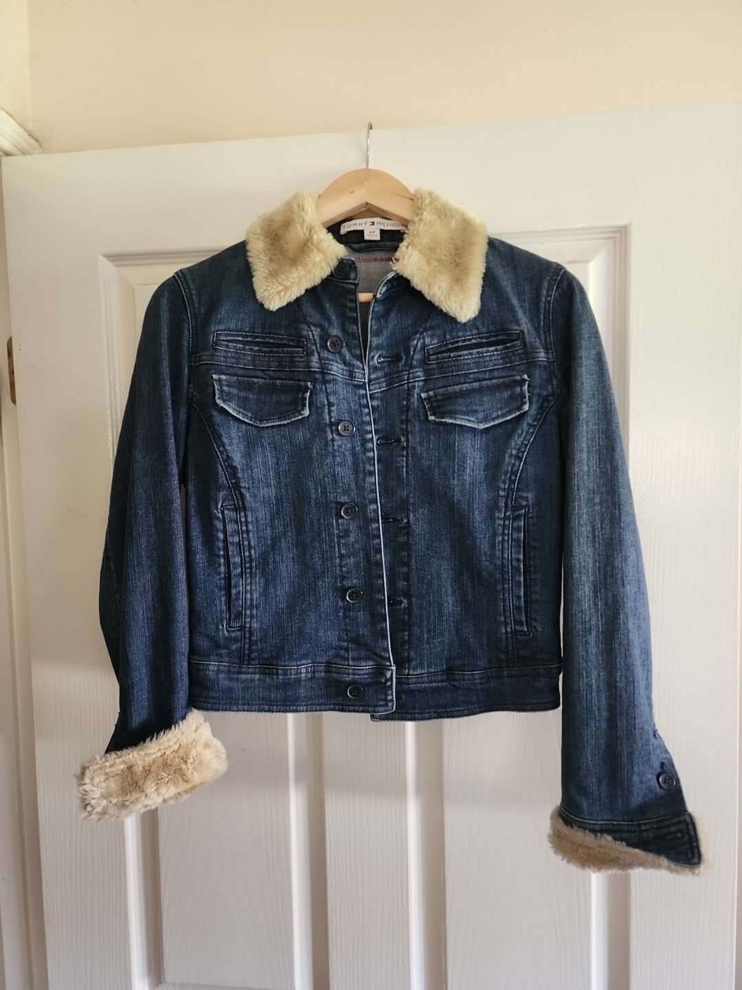 Vintage 1990s Tommy Hilfiger Jacket in excellent used condition. Size small/petite. It would be suitable for a size 6 or 8 by Australian standards. It has Faux Fur trims on the wrist cuffs and the collar. It has stunning embroidery on the back which details a flower. I have received so many comments when wearing this Jacket, unfortunately, it's too small for me now. Feel free to contact me with any questions before purchasing.