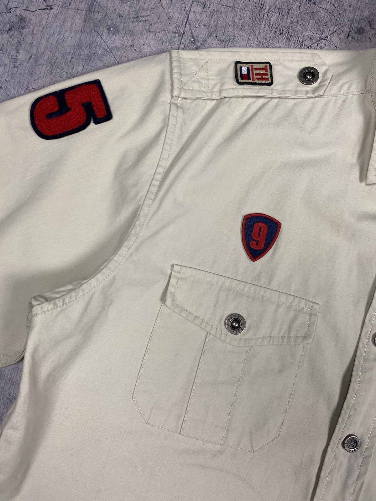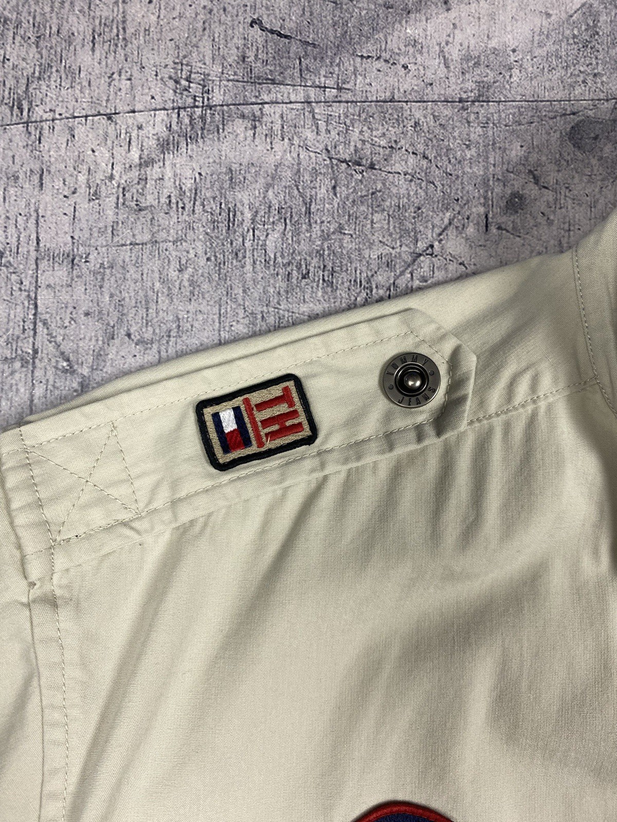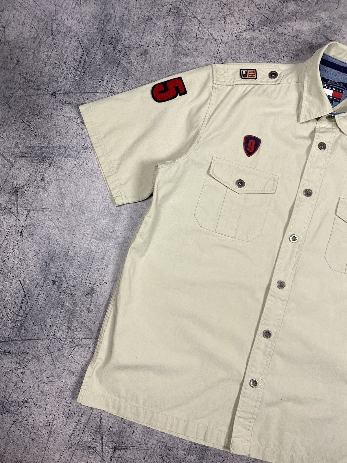 Three main reasons why you will be satisfied after the transaction with us 1 contact 24/7 and instant response to any questions 2 Always open to suggestions 3 Sending on the day of purchase and support until receiving the order —————————————————————————— -Please check the measurements Chest 24.8 in — ( 63 cm) Length 29.92 in — ( 76 cm) Shoulders 19.69 in — ( 50 cm) -Vintage Tommy Hilfiger Beige Military Safari Short Sleeve Shirt Patch -Size M -Condition: 10/10 -Look carefully at all the photos and make sure everything is fine -I am always open to suggestions and glad to new clients -I ship within 24 hours with a tracking number -Updates in my store every day, subscribe and stay up to date -All our products are 100% original -I will answer any questions - write