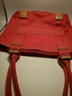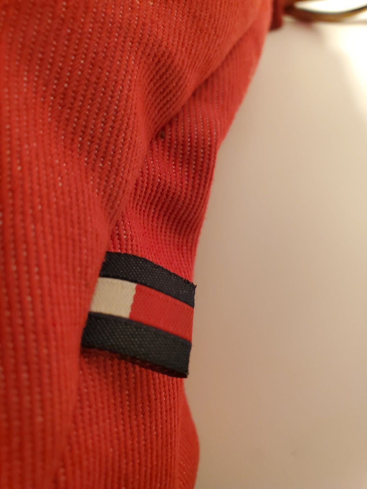 Vintage Tommy Hilfiger Red Denim Look Shoulder Bag w/Tan Trim Gold Hardware
