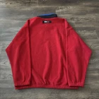 Vintage Tommy Hilfiger Red Pullover Fleece Sweater Pockets Men's Sz XL 1/4 Zip