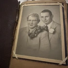 10”x13” tooled leather scrap book filled with photos, letters, notes, cards, announcements, et 31 pages