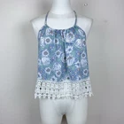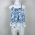 Vintage Womens Top by, Peppermint Polyester Sleeveless T Back Lace trim Floral USA Made Tank top Cottage Boho Good preowned condition Measurements in photos Size S