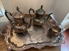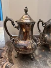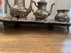 This vintage towel silver plated 4 piece tea/coffee set is a stunning addition to any collection. The set includes a teapot, coffee pot, tray and sugar bowl, all crafted with high-quality silverplate. The intricate design and attention to detail make this set a true masterpiece. The composition of the set is silverplate, adding a touch of elegance and sophistication to any setting. Perfect for entertaining guests or simply enjoying a warm cup of tea or coffee, this set is sure to impress. Add it to your collection today and enjoy the beauty and charm of this vintage silver plated tea/coffee set.