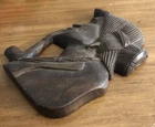 Vintage Tribal Art Hand Carved Wooden Figure Of Indian Native Smoking Pipe. Good Condition.