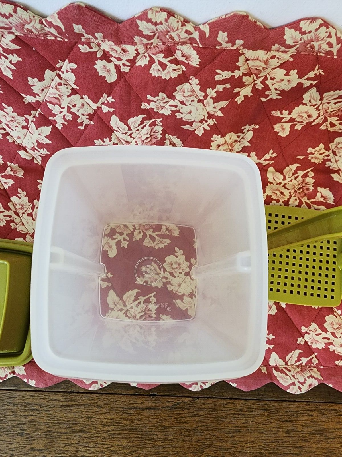 Love this vintage Tupperware pickle keeper—perfect size for pickles, olives, or even jalapeños! The avocado green lid gives it such a fun retro vibe, and it’s still in great shape with just minor wear. Super practical for keeping snacks fresh, and the airtight seal works like a charm. Clean, no odors, and exactly as pictured. A must-have for Tupperware collectors or anyone who loves reusable storage!