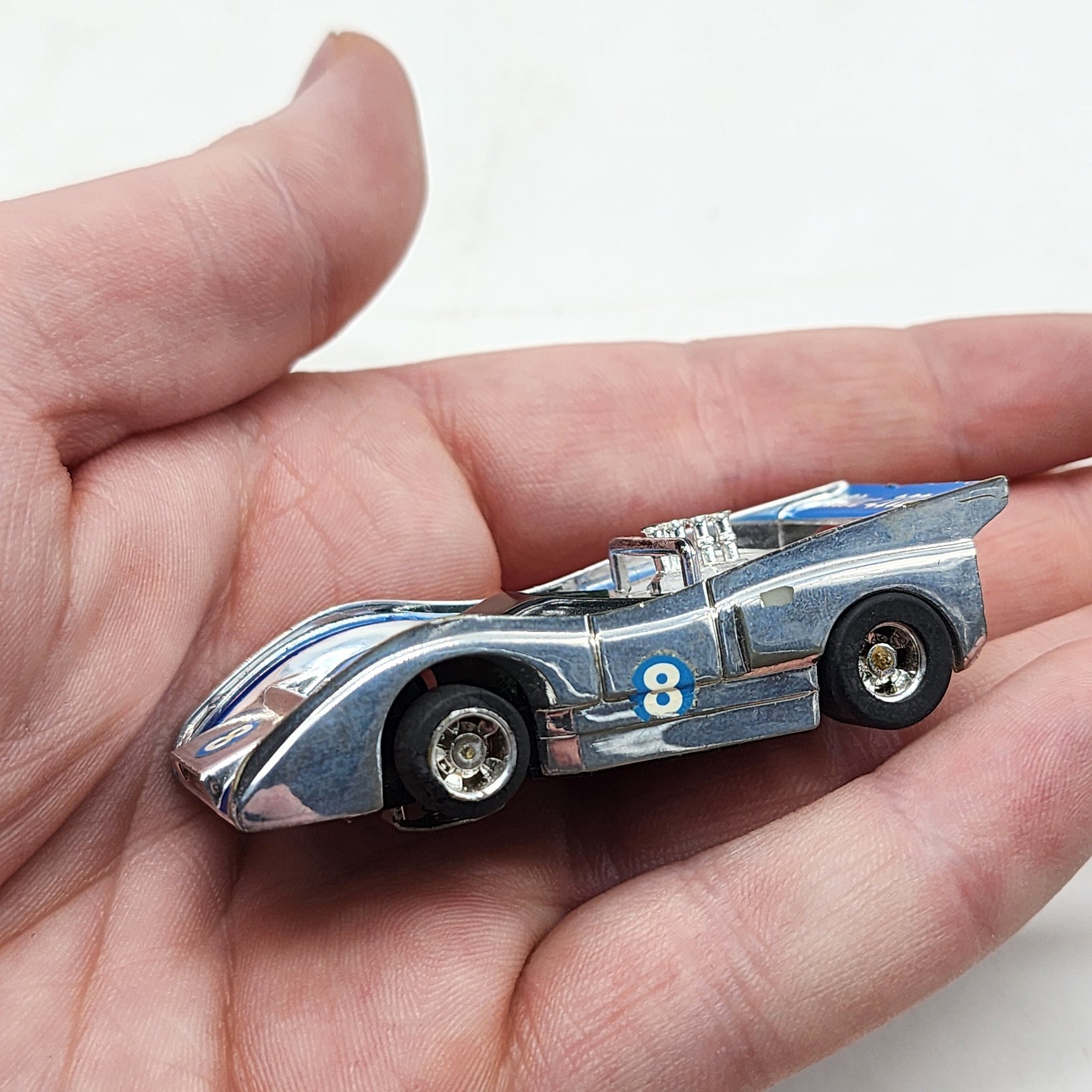 The item is preowned and in used condition. We do not have the means to test slot cars, so this is being SOLD AS UNTESTED. There are a few cosmetic pieces missing (the driver and part of the engine). The bottom of this slot car is clean. See photos for consideration. We do combined shipping! Contact us about bulk shipping prices prior to payment and save on shipping! Feel free to reach out to us if you have any additional questions or would like additional photos. We do combined shipping! Happy collecting! -Michael