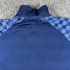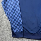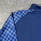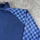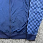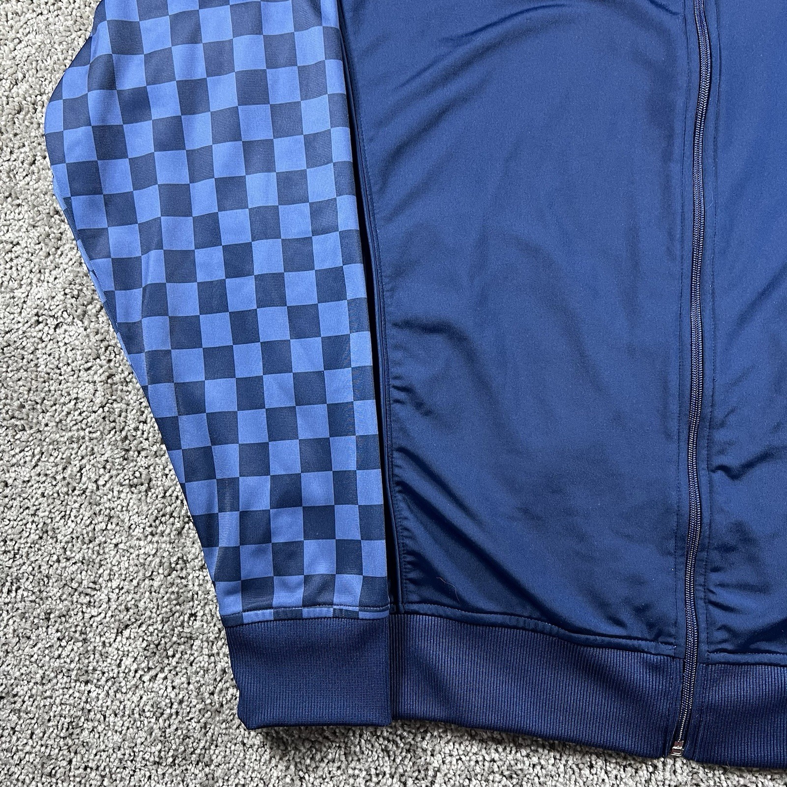 This Vintage UMBRO Adult XL Navy Checkered Full Zip Up Jacket is perfect for those who appreciate retro style. Made of 100% polyester with a mesh fabric type, this classic track jacket features a stand-up collar and long sleeves. Ideal for travel, activewear, or casual occasions, the jacket is easy to care for and has zipped pockets for convenience. With a nod to 80s and 90s themes, this jacket is a must-have for soccer, football, or track and field enthusiasts looking for a non-iron, mid-length outerwear option.