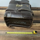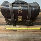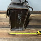 That’s bag came from came from Fort Douglas in Salt Lake City in the 1950. The bag is made of a thick gage leather. There is one strap on front of bag that is ripped. There is also some scuffs. See photos for exact condition. Measurements are included in photos. Message with any questions.