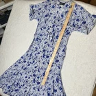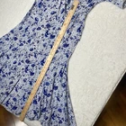 Vintage USA Dawn Joy 1970s 1980s White blue Maxi Dress V-Neck with collar button down front 7/8 excellent condition, tie front cinch, prairie, cottage core, whimsical, preppy ๐ specific measurement shown in photos ๐