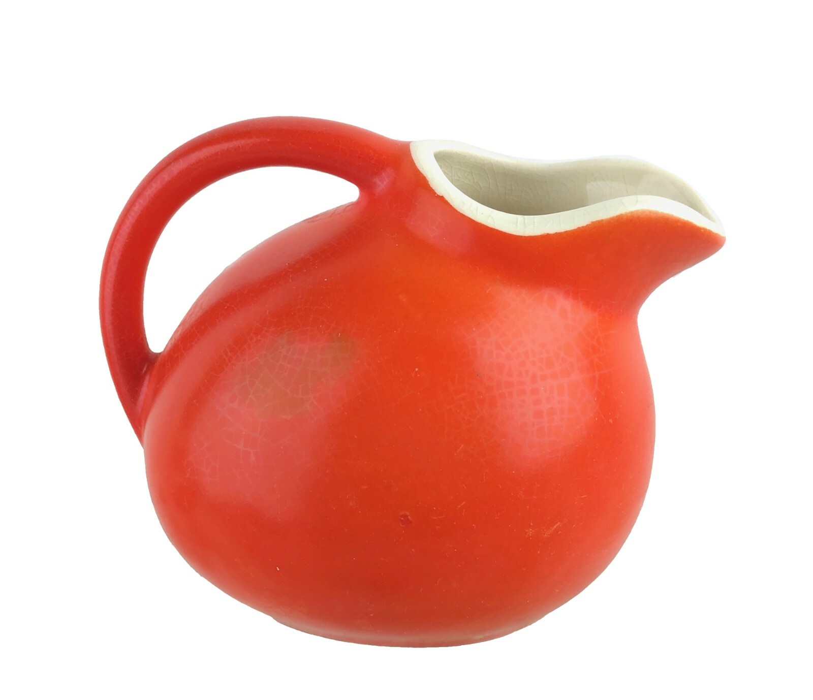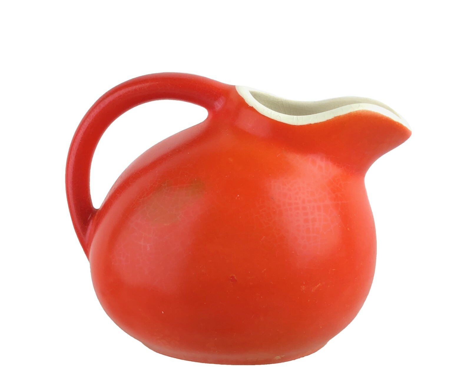 Vintage USA Pottery Bright Orange Round Cream Pitcher