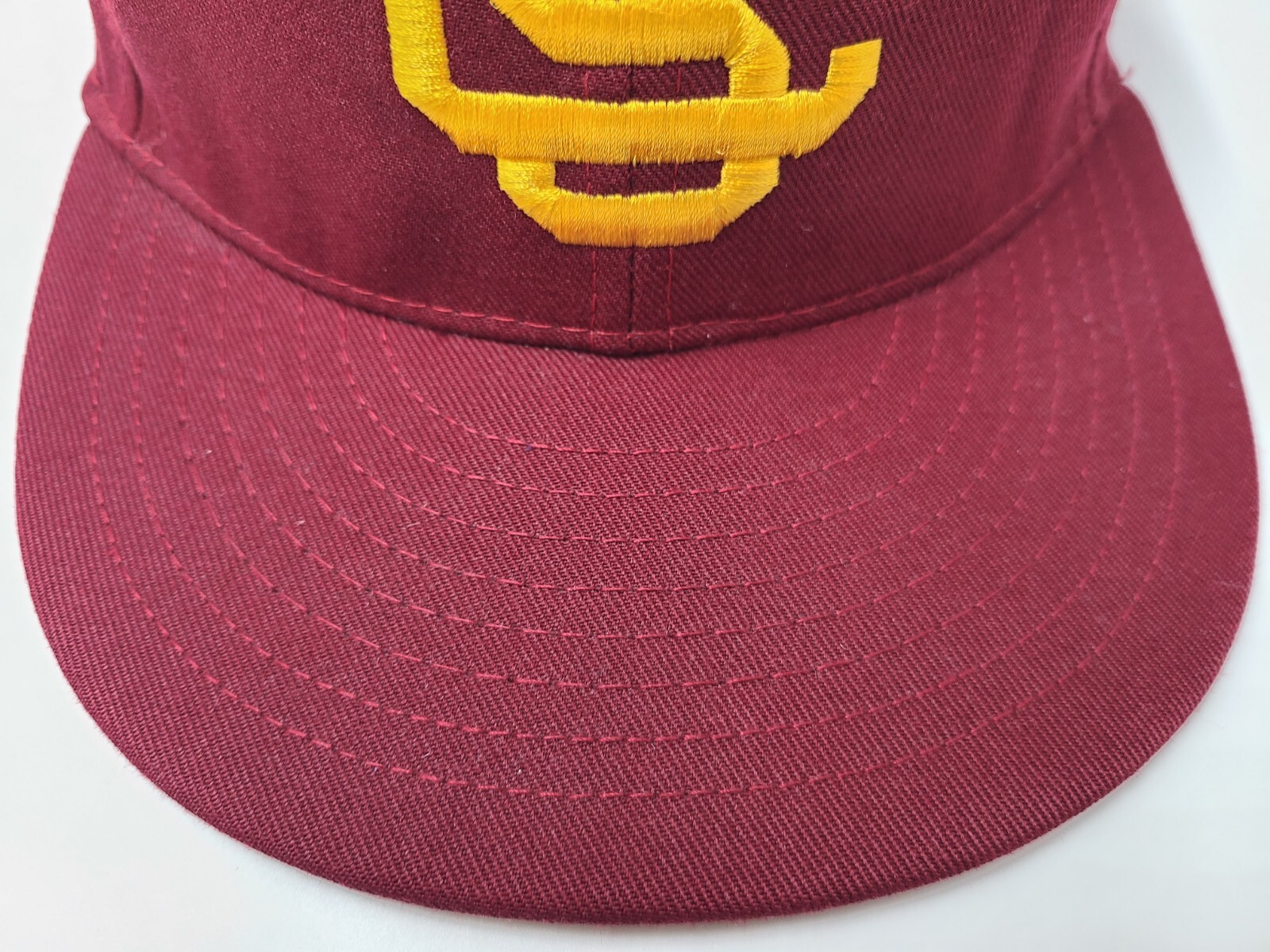 Love this vintage USC Trojans hat! The fitted 6 7/8 size fits perfectly, and the classic red design looks great. The slight wear under the brim adds character—feels like authentic sports history. Awesome deal with the $1 shipping for extra hats. A must-have for fans!