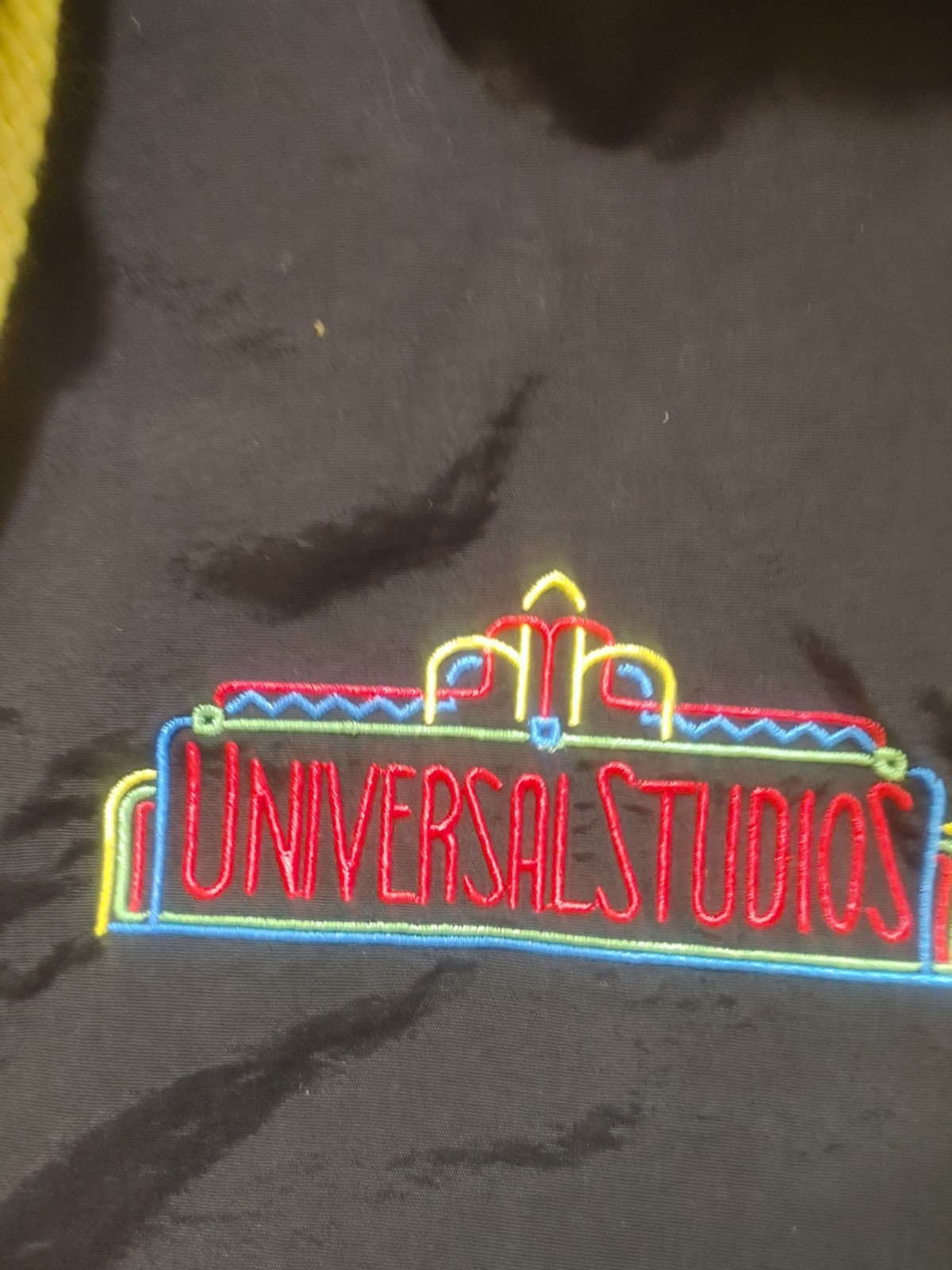 This Universal Studios Vintage Jacket in size small is a stylish and cozy outerwear option for women. Made of polyester with a softshell fabric type, this mid-length jacket features a zip closure and is accented with the Universal Studios Hollywood logo. Perfect for casual occasions in the winter, fall, or spring, it is lined with polyester and includes pockets for added convenience. The jacket's multicolor design adds a fun touch, making it a must-have for fans of the movie theme. Easy to care for with machine washable instructions, this vintage jacket is a unique addition to any wardrobe.