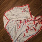The Vintage Vera Scarf is a stylish and unique accessory featuring a 24x24" square design with an abstract pattern in red and white. Made with a silk-like material, this scarf reflects the mod, MCM, 60s, and 70s style, making it an estate find that is both timeless and on-trend. The versatile design of the scarf allows it to be worn in various ways, adding a touch of vintage charm to any outfit.
