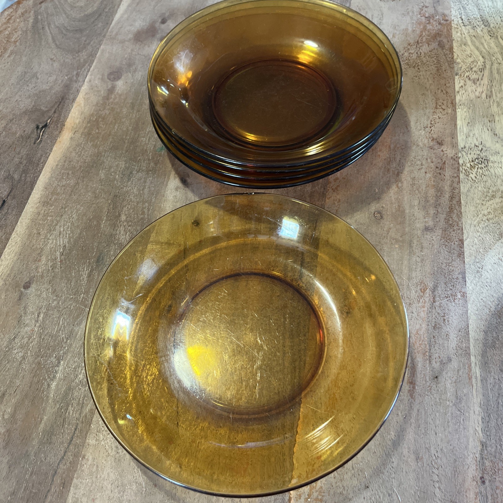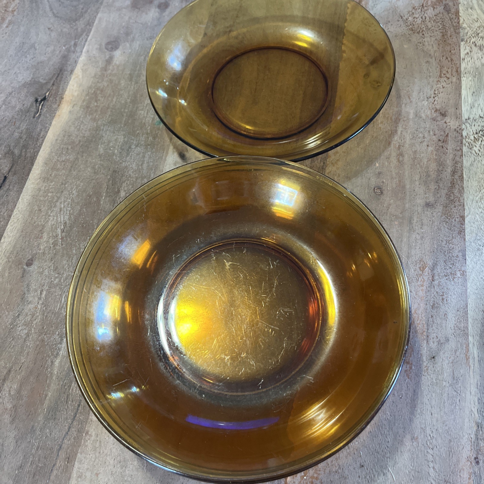 Vintage Vereco Amber Glass Salad Bowl 8.5” with 11” Serving Plate