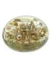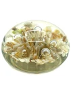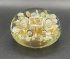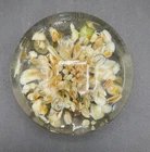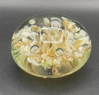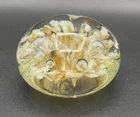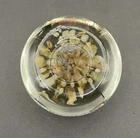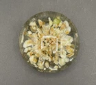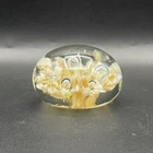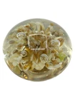 This vintage Vesta paperweight is a stunning piece of art glass that will add a touch of mid-century modern style to your decor. The multicolored abstract pattern features brown and white slag glass bubbles, hand blown and finished with a glossy shine. The paperweight is produced using an original production technique and stamped with an impressed backstamp, making it a unique and original piece for any collection. Measuring large in size, this decorative piece is made of high-quality glass material that withstands the test of time. Its antique value is enhanced by the fact that it was made in the late 20th century, specifically between 1970 and 1979. Add this beautiful handmade paperweight to your collection and enjoy its beauty and uniqueness for years to come.
