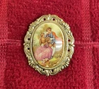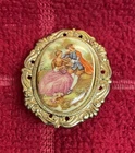 This beautiful vintage Victorian brooch depicts a courting couple in an oval shape. The brooch is made of high-quality porcelain and features a stunning multicolor design that will surely catch anyone's eye. Measuring at 1.25 inches in length, this brooch is the perfect addition to any fashion jewelry collection. The brooch is a perfect example of vintage and antique jewelry, making it a great conversation piece. It is ideal for those who love to collect unique items and add a touch of history to their wardrobe. This brooch is a must-have for any jewelry lover and is sure to make a statement wherever you go.