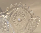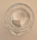 This Vintage Victorian Clear Cut Glass Candy or Nut Dish/Bowl features a round shape with a diameter of 5.5 inches. The bowl is adorned with an all-over flower pattern and a shiny finish, typical of the Victorian era. Made of clear glass, this original piece is perfect for serving candies or nuts at any occasion. Hand wash only to maintain its vibrant shine, this collectible item adds a touch of elegance to any home decor, particularly those with a Victorian theme.