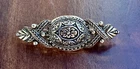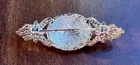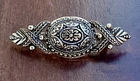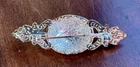 This vintage Victorian filigree brooch pin is a beautiful piece of estate jewelry. Measuring 2 inches in length, the silver brooch features intricate detailing and a design that embodies beauty, art, and fashion. It is a timeless accessory that would make a lovely gift for occasions such as Mother's Day, anniversaries, or birthdays. This unisex piece is a unique addition to any jewelry collection. Approximately .75 inches tall, 2 inches wide.