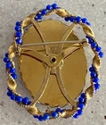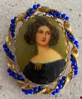 Vintage Victorian Lady Brooch Gold Tone & Blue Beaded Ribbon Pin 2" Check out our other listings and ebay store for similar items and other finds :) We will gladly combine shipping! All of our packages include a tracking number