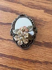 Vintage Victorian Mirror Brooch Pin Layered Flowers 3D Textured Mixed Faux Pearl. 2.5”x1.5” Don’t bid if you don’t intend to pay. Thank you!🍑