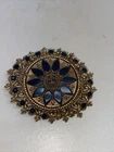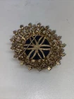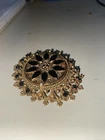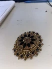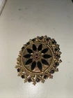 Beautiful and fine pin / Brooch Cut onyx with Filigree Gold Plated case Has a few small onyx from one side missing as pictured