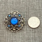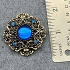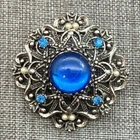 This brooch is so vintage that when you wear it, your grandma might call you for fashion advice. The blue cabochon is so mesmerizing, it’s like staring into the ocean, minus the seagulls. • Ornate silver-tone design • Blue glass cabochon center • Accent rhinestones and faux pearl for sparkle and glam • Vintage style • Measures 1.75 inches in diameter Small scratches on metal surface, as shown, sold as is. Ornate, Retro, Vintage, Classic, Fashion, Victorian, Collectible, Gift, 80s #Sustainable #ChooseSecondhand * I cross-post to other platforms, so when you love the item, act fast! Please follow me and save me as a favorite seller, I post new listings daily! * Use the coupon (Currently code DPSAVE10IN2024) to save 10% by purchasing 2 or more items! Or please wait for a new invoice with combined shipping to save you money by bundling! * Add #DenisesPieces to your search to find my other items for more fabulous jewelry a lot of other fun stuff. Please check out my store and you can search by category! * I do my best to note any flaws. See photos for close-ups & measurements, props & ruler not included! * Many items from estate sales or my own closet, all items sold as is. Smoke free & pet free home! *111024 LB2baE
