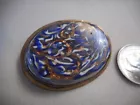 Vintage Victorian Oval Brooch Gold-tone Marbled top Blue & gold stone, white AHB Measures about 1 1/2" wide X 1 1/8" tall True vintage Victorian oval small brooch. Unknown metal, gold-tone, rough condition on the back. C clasp, not loose. Unknown oval stone(maybe glass?. Kind of a gray color. Looks like painted on the top(royal blue, white & gold-stone colors). There in some pitting on top, tried to show in pictures. PLEASE READ for shipping information I do not accept returns so please ask questions before bidding or buying. There may be taxes charged by Ebay for your state. I will not know charges for taxes. Buyer is responsible for all import charges. I do combine shipping. Combined shipping charges must be changed by me before payment. If paid for before I change charges I can not reimburse some shipping until package is received & good feedback is given, buyer must notify me. THANK YOU