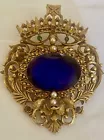 Vintage Victorian Brooch with a large Cobalt Blue cabochon and small multi color rhinestones, This is not signed, it was part of an estate. Beautiful !!!!!