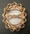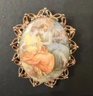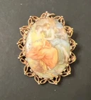 Add a vintage touch to your fashion accessories with this beautiful Victorian Pin Brooch. The piece features a gold tone metal with a printed milk glass . The brooch has an unknown metal purity and country/region of manufacture. Measures 1 3/4” long and 1 1/2” wide. The brooch is perfect for those who love collecting vintage and antique jewelry especially cameos. Please see all pictures for details