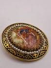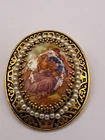 This Vintage Victorian Portrait Brooch Pin Pendant features an oval shape with a gold tone filigree design adorned with faux pearls. The brooch can also be worn as a pendant, making it versatile for different occasions such as Mother's Day, Christmas, weddings, and more. The multicolor design adds a touch of beauty and art to this antique piece, perfect for anyone looking for a unique and timeless accessory.