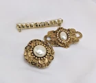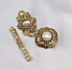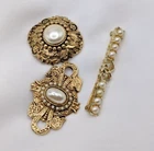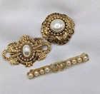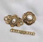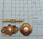 Good overall condition...the pin backs are in place and working... for the complete dimensions, please see the last photo...no missing stones noted...this listing is for 3 pins, as shown...the bar pin is signed Sarah Coventry... For our collection of vintage jewelry, we ask that you examine the photos carefully to form your opinion of the item's condition. Please understand that vintage jewelry may be tarnished or show signs of wear associated with its prior history. We make every effort to examine each item that is listed in our shop and will note major flaws in the item description. Our goal is to provide our customers with items they love and will appreciate so feel free to ask questions prior to purchasing. We gladly combine shipping. Thanks for stopping by...visit our shop for lots of fun and unique items for you and your home.