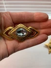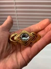 Vintage Victorian Revival Brooch /pin Large Light Blue Gold Tone