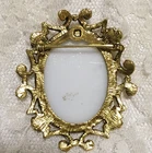 Vintage Victorian Style Brooch Gold Tone Oval Ceramic Ornate Floral