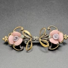 This vintage Victorian style brooch is a beautiful piece of fashion jewelry. The delicate pink double porcelain rose floral bow design is perfect for any occasion, whether it be a romantic engagement, Mother's Day, anniversary, birthday, or just a special treat for yourself. The brooch is signed by the 1928 Jewelry Co. and has a flush setting style. The item measures 2" in length and is made from a combination of porcelain and metal materials, with an antique gold tone color. The brooch is a perfect example of the Victorian style era and is an original piece from the United States. It is not customized, handmade, or altered in any way. This brooch is a wonderful addition to any vintage jewelry collection and is sure to impress. The object in the pictures is the actual item you'll be receiving. We have over 15 years in the jewelry business and over 10 years selling on Ebay. Expect great customer service and super fast shipping from Central Florida. Please check our store for additional items you might like. We are happy to combine shipping. We ship every day. Your review helps our small business grow. Kindly share your experience