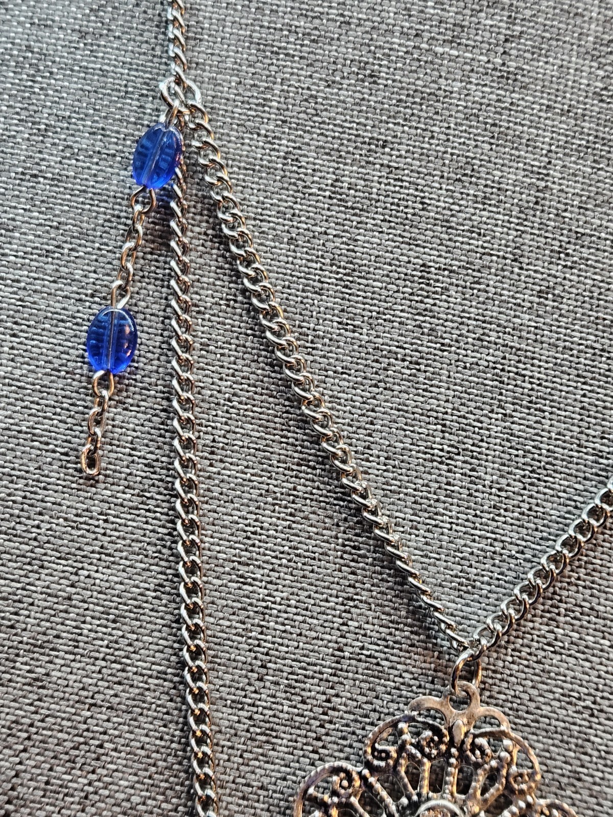 Buy and get free jewelry!! Selling a beautiful ONE of a kind Vintage Silver Tone Victorian Style Royal Blue Rhinestone Necklace. This necklace is 20 3/4" inches long, This is a handmade and Hancrafted necklace and is the only one that exists, Please see pictures for condition and size, free fast shipping!!