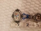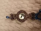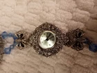 This vintage Victorian brooch pin features a blue floral design on silver tone metal. The brooch includes a small watch element. The main stone and overall color of the piece is blue, adding a touch of elegance to any outfit. The brand of the brooch is Geneve, showcasing its quality and style. Works. No scratches pin is working clasp. As is all sales final always happy to combine shipping