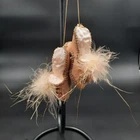 Add a touch of elegance with these vintage Victorian-style high heel shoe ornaments. Featuring intricate gold trims and delicate feather details, this pair is crafted to convey sophistication. Perfect for collectors or as a refined addition to holiday decor. • Gold trim for a luxurious touch • Feather details for added elegance • Hanging loop for easy display • Vintage Victorian style