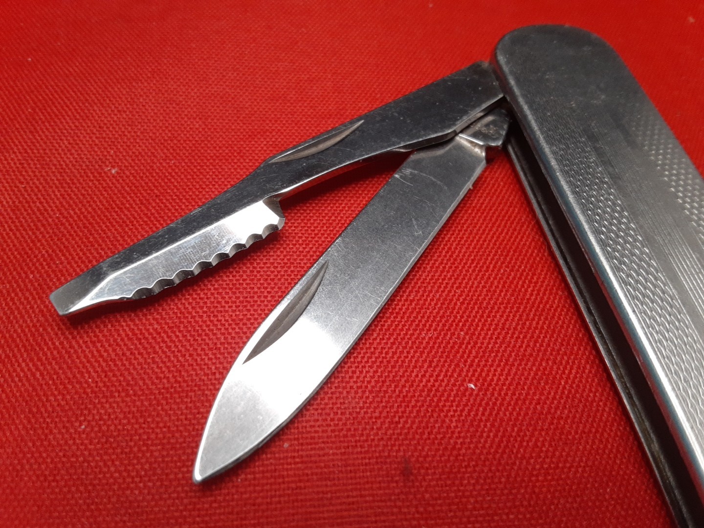 Knife is in good condition. Blades, tools and scales show signs of use such as scratches and marring. Lock up on all tools are strong with no play. All imperfections, flaws and defects are shown in pictures. Please see all pictures and use zoom function to see full condition of Item. Item May Need To Be Cleaned Further. Blade May Need To Be Sharpened.