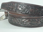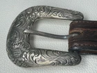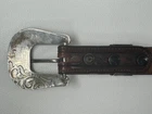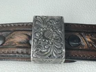 Fresh Estate Find. Vintage, Vogt, Sterling Silver, Western Belt Buckle Set. Matching Vogt Tooled Leather 40 x 1 1/3" Belt. 2 1/4" Buckle will hold a 1" Belt.