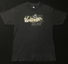 This vintage Volcom t-shirt is for men in size large with a solid black color and a crew neck style. Made of 100% cotton, it features a regular fit with short sleeves and retro "Writing on the Walls" graphics. The shirt has a vintage look and is machine washable, making it easy to care for. This unique piece was made in the United States and is a classic addition to any casual wardrobe.
