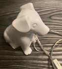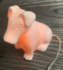 Jaunty terrier, ready to light up your life! Vintage white ceramic lamp with 36" clear cord, and an on-off switch near the dog's hind quarters.. Exudes a soft light that turns the dog pinkish when on. Piece is in excellent condition; there is one pin-sized "beauty mark" on pup's rump that is part of the manufacturing process. (See last photo.) No chips or scratches. Measures 8" high x 8" long x 4" deep. Fast shipping, quality packed, trackable. Thanks for looking :)
