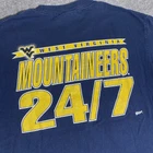 Vintage WVU Double Sided Graphic Tee 24/7. Good used condition. Light signs of wear and fade. No major stains, no rips, holes, tears, or damage. Adult size Large. Measurements in photos and description! MEASUREMENTS Pit to pit: 21 inches Length: 29 inches Shown in photos! ** This item has been washed and cleaned per eBay’s used clothing policy. ** Ships within 24 hours of purchase via USPS Ground Advantage.
