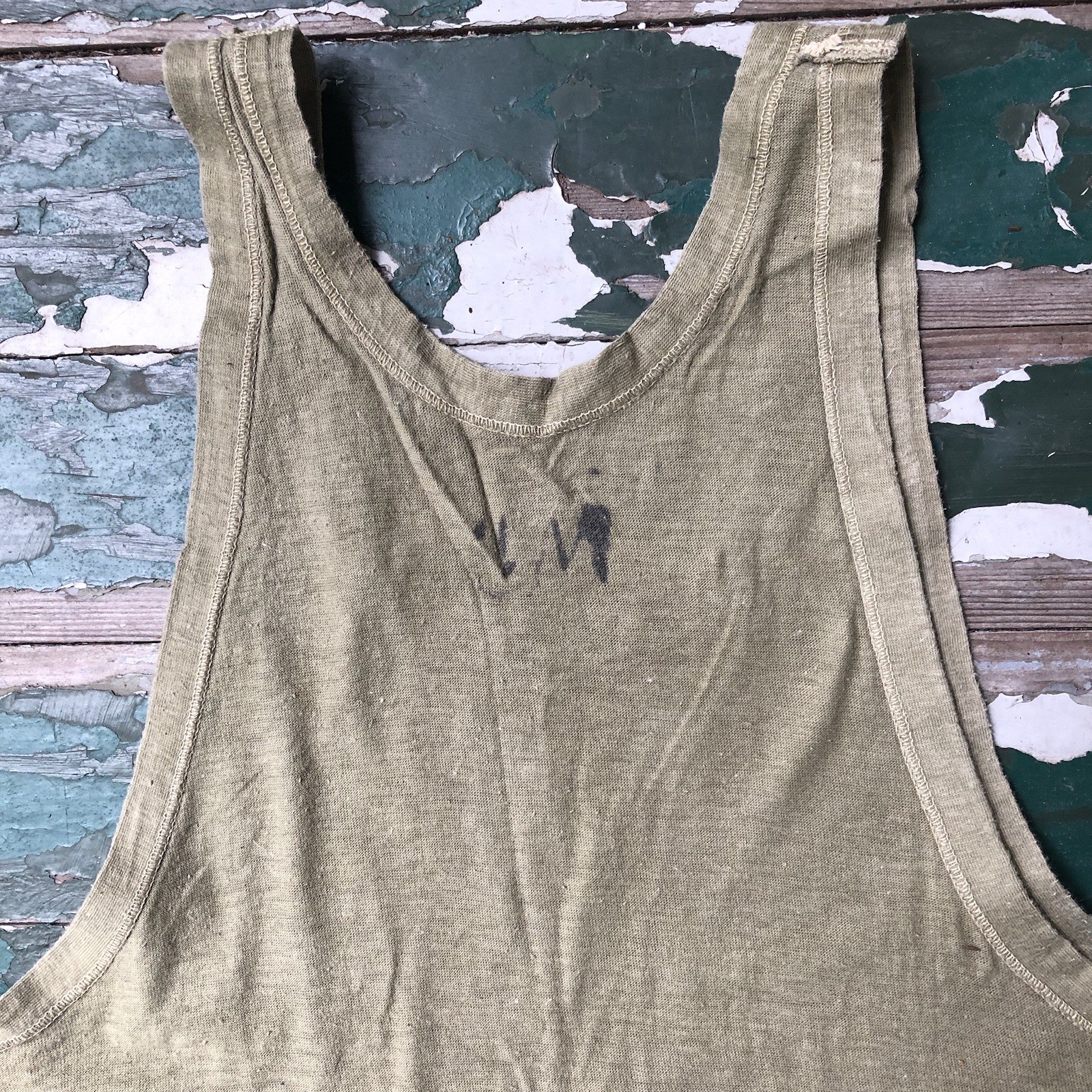 Measurements taken laying flat Pit to pit 16.5 stretches comfortably to over 20 Length 28.5 Some writing/stencil Worn condition