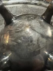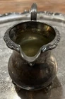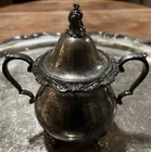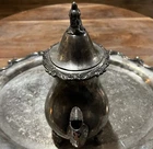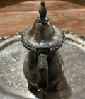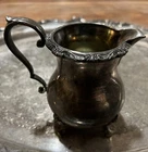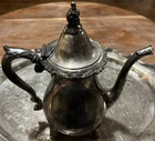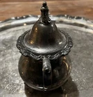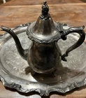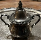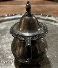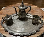 Elevate your tea time with the vintage charm of the Wallace Stainless Plated Set. This elegant ensemble includes a teapot, creamer, sugar bowl, and a matching tray, all designed to impress with their classic design and timeless appeal. The silverplate composition ensures a bright, reflective finish that catches the eye and adds a touch of sophistication to any table setting. Whether you're a collector of antique silverware or simply appreciate the beauty of bygone-era pieces, this set is a must-have. The Wallace brand is synonymous with quality and craftsmanship, and each piece in this set showcases the exceptional workmanship that has gone into creating these items. Add a piece of history to your home with this exquisite silverplate set. The teapot is marked Wallace Silver Plated but does not have a number marked on it The creamer & sugar are both marked Wallace with the # 1100 The tray is marked Wallace and the # 1100-2