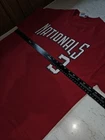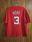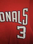 Step up your game day attire with the Vintage Washington Nationals Jose Vidro XL Men's Red Graphic Logo Tee. A must-have for any MLB aficionado, this shirt celebrates the legacy of Jose Vidro with a bold graphic that puts a classic spin on your team pride. Made by Majestic, renowned for their quality sports apparel, this tee is designed to make a statement in the stands or wherever your support for the Nationals takes you. Crafted for comfort and style, this shirt comes in a vibrant red that's sure to stand out, featuring the official MLB Washington Nationals logo. It's a size XL, catering to a relaxed fit preference, perfect for the regular season or any time you want to show your support. Proudly made in El Salvador, this shirt is an authentic piece of baseball memorabilia that belongs in the collection of any true fan.
