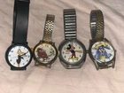 -VINTAGE WATCH LOT(14 Watches) -Armitron Daffy Duck Watch 1990 Warner Bros. Needs Battery. -Timex Winnie the Pooh Farmer Eeyore Watch. -Tokyo Disneyland Timex The Lion King Pumbaa Timon Vintage Style Wrist Watch RARE -Vintage 1970 Timex Mickey Mouse Fun Timer Watch with band -Disney Women's Watch Mickey Explorer Glo Light 33mm - -Timex-Sutton-Pulsar-Vivani women’s watches aš well… -POLINI/SASSON VINTAGE POCKET WATCHES -SOLD AS A LOT NOT INDIVIDUALLY!! -This vintage watch lot includes 14 watches featuring characters like Mickey Mouse, Eeyore, Daffy Duck, and more. The watches were manufactured between 1950-1985 and are powered by a quartz movement. With a yellow gold case color and black dial color, these pocket watches are a nostalgic and charming addition to any collection. Made in Japan and with features like a seconds hand and 12-hour dial, these watches bring a touch of whimsy and history to the wearer's wrist. OPEN TO OFFERS… $67.89/obo