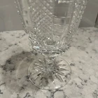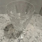 This is a vintage Waterford Crystal Hibernia water goblet glass, measuring 6 inches in height. It is signed by Waterford and made in Ireland. The glass is clear in color, made of crystal, and features a cut glass design. It is part of the Hibernia product line from Waterford, known for its handmade and hand-blown glass production technique. No chips, cracks, or repairs. It shows the early Waterford mark on the bottom. Let the photos help with the description. Excellent preowned vintage condition.